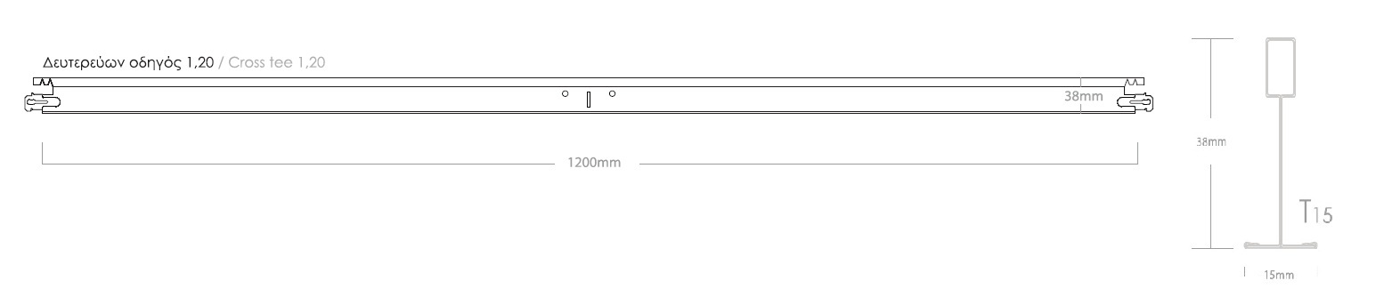 Δευτερεύων οδηγός ΤΑΥ 15x38mm, Hook, παράγεται από gαλβανισμένη εν θερμώ λαμαρίνα, ενώ η εμφανής πλευρά του επικαλύπτεται από ταινία χάλυβα με θερμοσκληρυνόμενη πολυεστερική βαφή φούρνου.