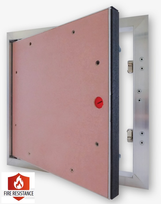 Πυράντοχη θυρίδα επίσκεψης 40x40cm για τοίχους και χωρίσματα γυψοσανίδας, ιδανική για επιθεώρηση και συντήρηση εγκαταστάσεων, με υψηλή αντοχή στη φωτιά και ασφαλές σύστημα ανοίγματος push-lock.