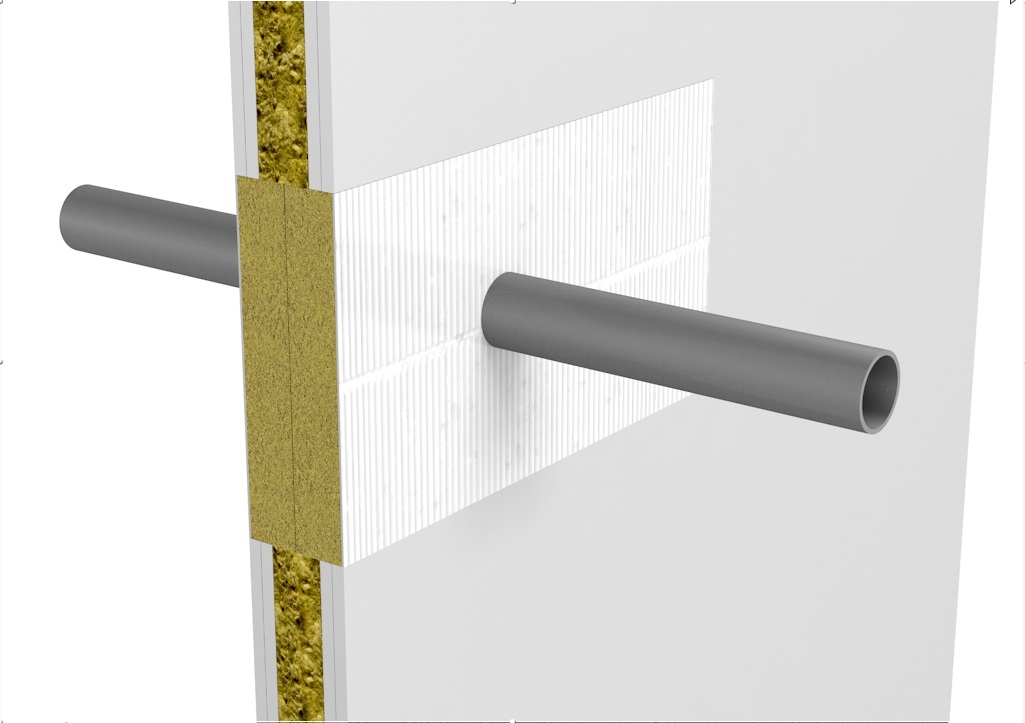 Πυράντοχο πάνελ, πάχους 60mm, που επιτρέπει την διέλευση διαφορετικών τύπων σωληνώσεων, παρέχοντας υψηλού χρόνου αντίσταση σε κατάσταση πυρκαγιάς, ενώ ταυτόχρονα βελτιώνει την θερμομονωτική απόδοση της κατασκευής. Διαστάσεις Πάνελ: 1200X600mm.